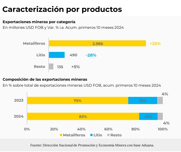 “En cuanto a minería exportadora, tenemos la mayor cantidad de proyectos y representamos el 75%. Lamentablemente la situación de hoy es bien compleja. Se trata de proyectos que ya están en una etapa madura. Algunos ya están llegando a los 25/ 26 años de explotación. Otros están entre 10 y 12 años. Y unos pocos son de los últimos 4 o 5 años. Y la realidad que muestra el sector, tiene que ver con que no hay proyectos nuevos de oro y plata en Argentina. Este es un dato bien concreto. Y no hay proyectos nuevos de oro y plata en Argentina porque el nivel de explotación bajó significativamente. Y el motivo por el cual la explotación bajó significativamente es porque en los últimos 20 años, por lo menos 16, hemos tenido restricciones muy fuertes respecto fundamentalmente al acceso a divisas, al cumplimiento pleno de la ley de inversiones mineras y hoy agravadas por el tema de las dificultades para acceder a insumos y repuestos importados, insumos, repuestos, maquinaria exportada, que no se produce en el país”