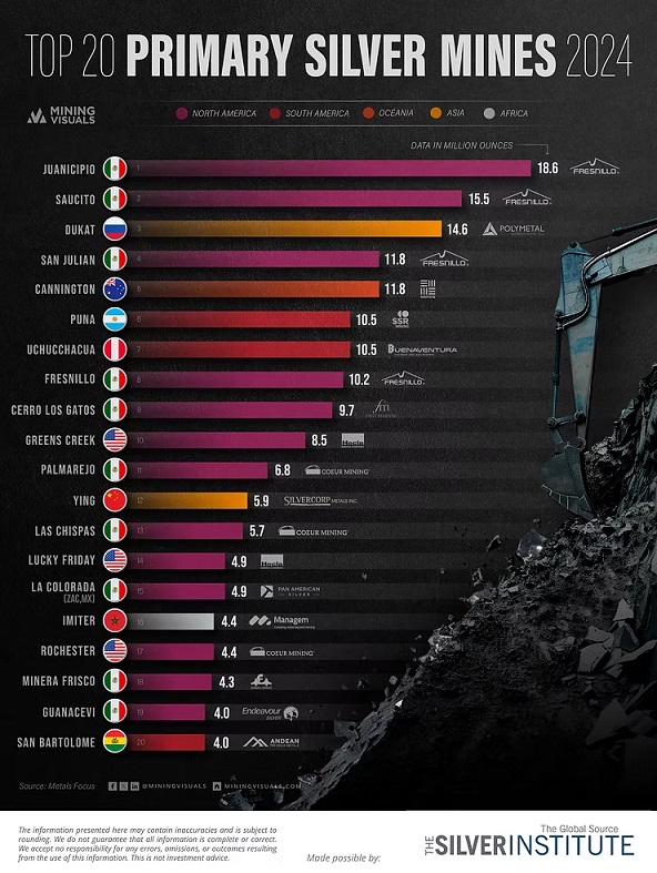 Argentina está dentro de las 20 principales minas de plata primaria de 2024