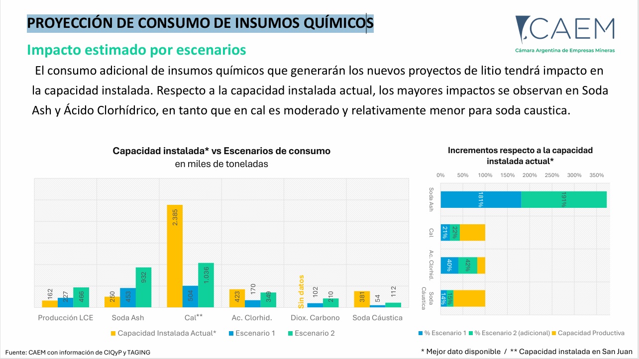 o.- La Cámara Argentina de Empresas Mineras (CAEM) estimó -en el informe presentado- que la demanda de reactivos químicos específicos para la minería será “creciente” en los próximos años. Y agregó que superaría la capacidad de la producción local.