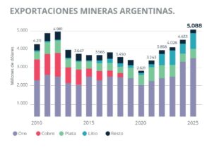 (1) “Informe Productivo de la Minería Argentina”. Cámara Argentina de Empresas Mineras y Bolsa de Comercio de Rosario. 2025.