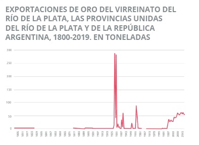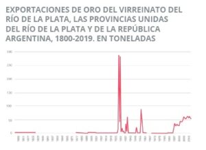 EXPORTACIONES DE ORO DEL VIRREINATO DEL RÍO DE LA PLATA, LAS PROVINCIAS UNIDAS DEL RÍO DE LA PLATA Y DE LA REPÚBLICA ARGENTINA, 1800-2019. EN TONELADAS