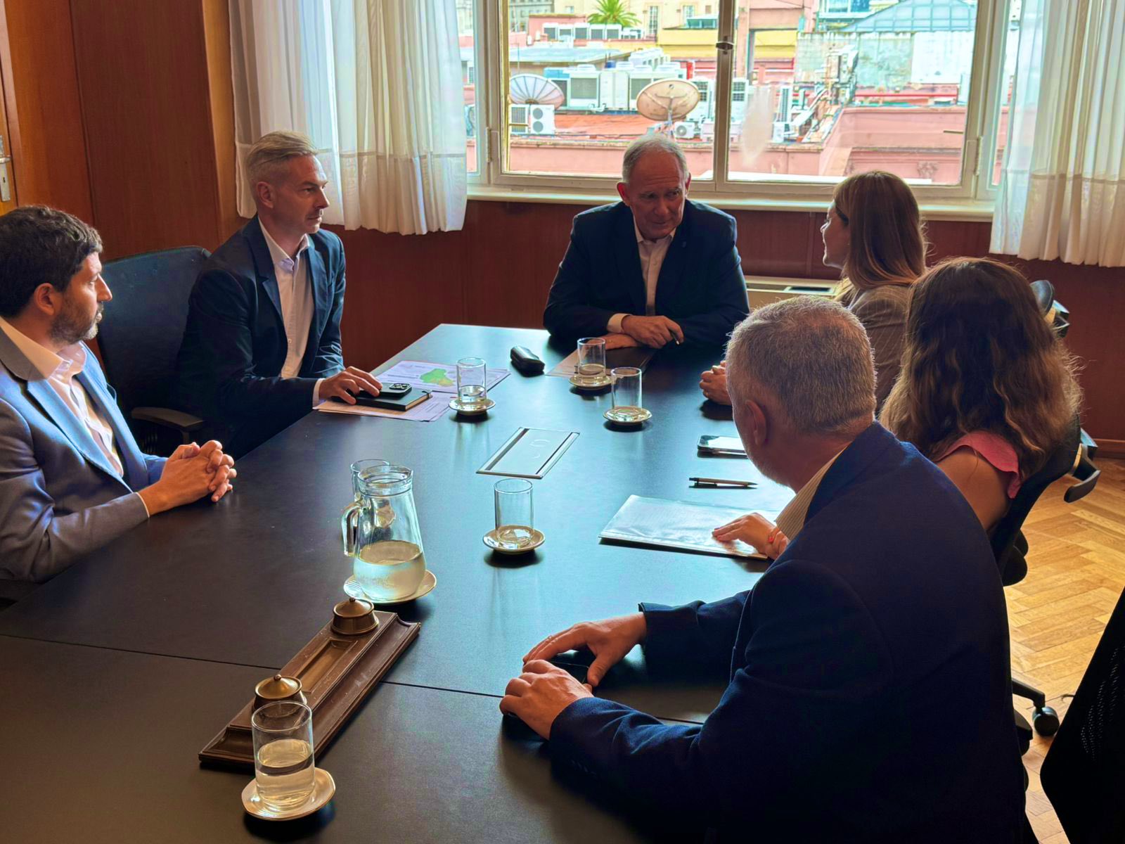 Del encuentro, participaron el ministro de Seguridad, Matías Nicolini, la secretaria de Planificación y Vinculación Institucional, Leticia Esteves, el subsecretario de Vinculación y coordinador de la Oficina Provincial de Tecnología de la Información y la Comunicación (Optic), Juan Manuel Morales, y el representante de la OAVV, Sebastián García.