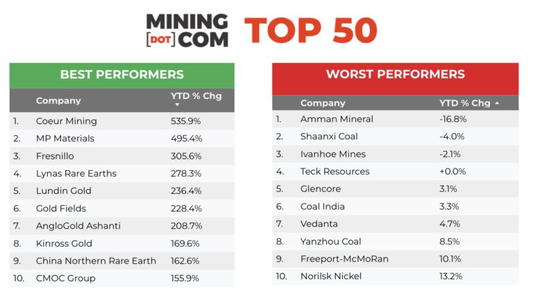 La lista de mejor desempeño brilla con los contadores de oro y plata, incluido un sorprendente aumento de seis veces para antiguos pequeños como Coeur Mining (que cronometró su adquisición de minas de plata mexicanas a la perfección) y un salto del 305% para Fresnillo, la minera de plata que cotiza en la bolsa de Londres controlada por Peñoles de México.