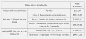 ARTÍCULO 1°.- Actualízase el valor del canon anual por pertenencia, de conformidad con lo establecido en la resolución 90 del 11 de julio de 2023 de esta secretaría (RESOL-2023-90-APN-SM#MEC), de la siguiente manera:
