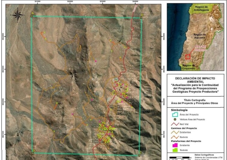 o.- La Dirección Regional de Atacama del Servicio de Evaluación Ambiental (SEA) acogió a trámite la Declaración de Impacto Ambiental (DIA) del proyecto «Actualización para la Continuidad del Programa de Prospecciones Geológicas Proyecto Productora«, presentada por Sociedad Minera El Águila SpA.