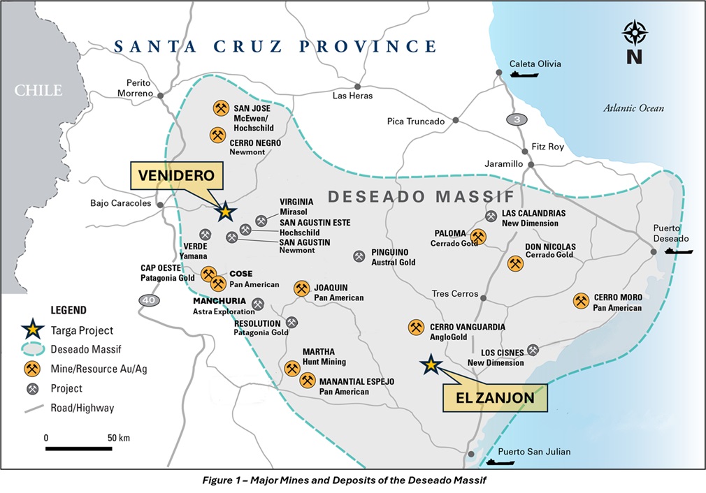 o.- Targa Exploration Corp. anunció la celebración del acuerdo de opción con fecha 7 de noviembre de 2025 con Aegis Resources Ltd. y algunas otras partes para adquirir una participación de hasta el 80% en cada uno de los proyectos de oro y plata Venidero y El Zanjón, ubicados en Santa Cruz, Argentina.