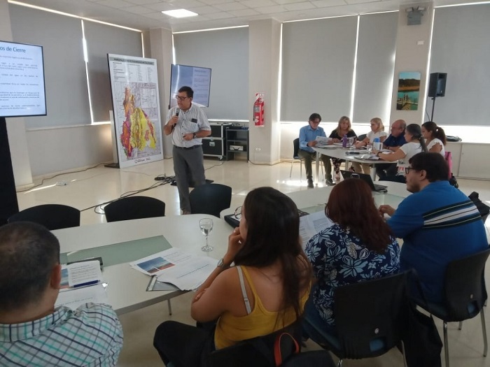 Los Gerentes de Medio Ambiente, Martín Colil; y Procesos, Marco Nuñez, fueron los responsables de realizar una exposición ante la CIEAM, el marco conceptual diseñado para el cumplimiento de los requisitos legales y requerimientos técnicos hechos por la autoridad de aplicación en la actual etapa de la mina, que integran una proyección futura sobre el destino de las instalaciones que ya no se utilizan en el complejo minero.
